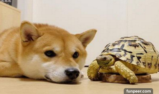 柴犬從小和陸龜一起長大,沒想到漸漸的連行為都越來越像... 尤其是最後一張,我快笑瘋了!