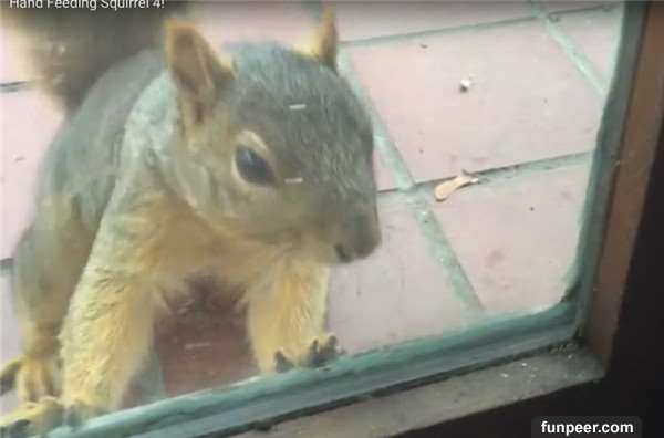 為了證明這隻小松鼠真的很有禮貌的要花生,這家人常常在Youtube上發布拍攝的小松鼠討花生,而且都是不同時間拍的,可見牠真的常常來打擾呢XD