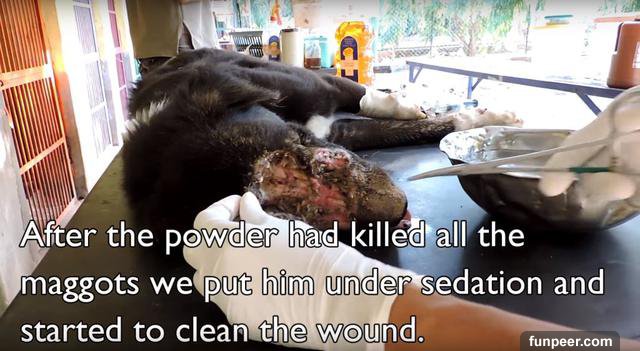 (圖片翻攝自youtube) 打了鎮定劑後,開始清理他的傷口