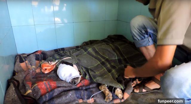 (圖片翻攝自youtube) 他們一度打算讓他安樂死但還是不忍心,這是他接受救治後睡覺的樣子