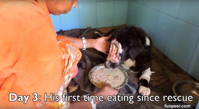 (圖片翻攝自youtube) 把他救回來第三天,他開始吃東西了