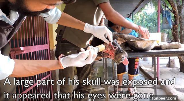 (圖片翻攝自youtube) 傷口讓他的骨頭都露出來了…眼睛也看不到了…