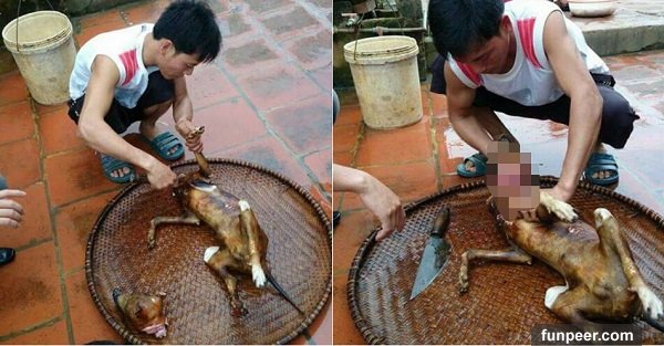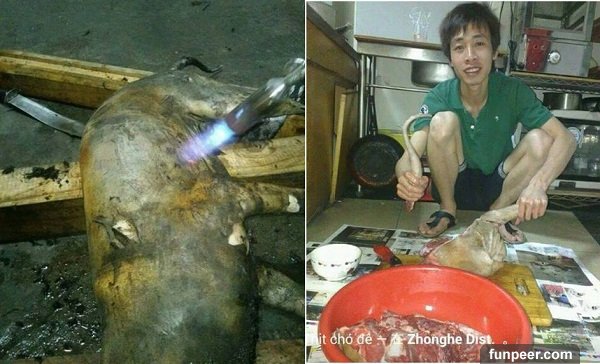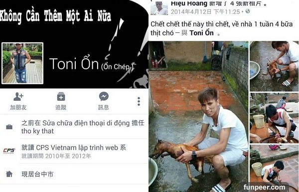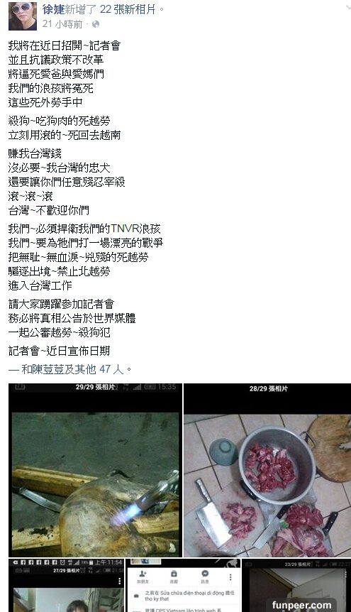 網友徐婕 在臉書貼文:殺狗~吃狗肉的死越勞