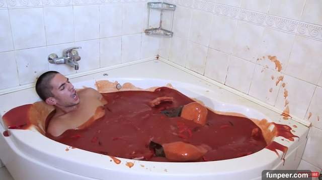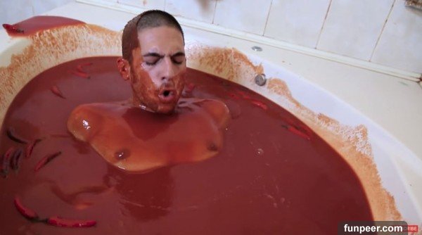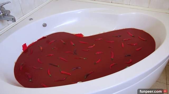 男子在浴缸倒入「1250灌辣椒醬」後全身泡進去,1分鐘後…他的身體竟然出現了「驚人變化」!