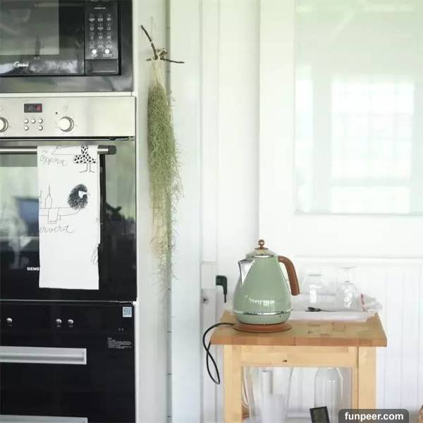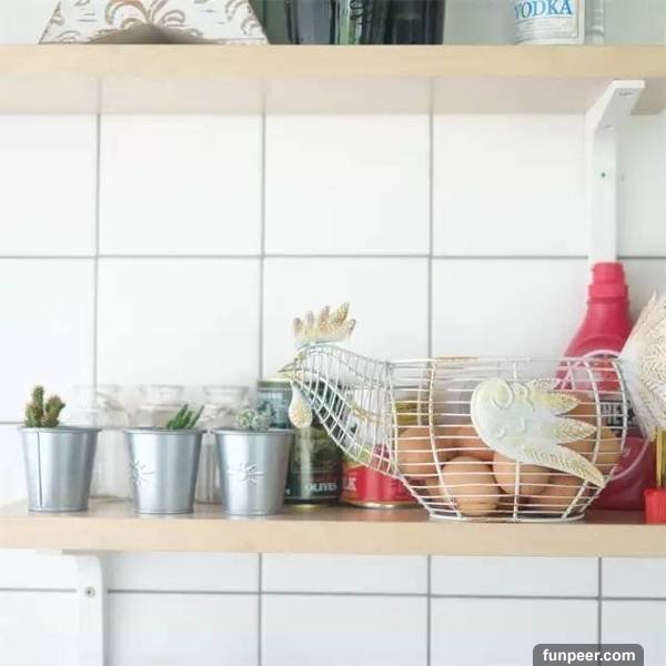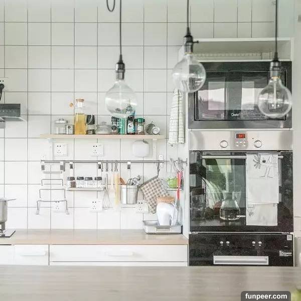 置物擱板負責家裡的瓶瓶罐罐各種工具也都分類上牆微波爐、烤箱等塊塊專用廚房電器摞起來節省空間