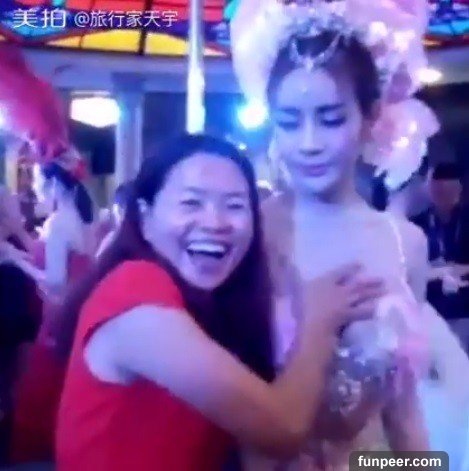 一開始人妖還笑笑的合照,沒想到這個大媽變本加厲,