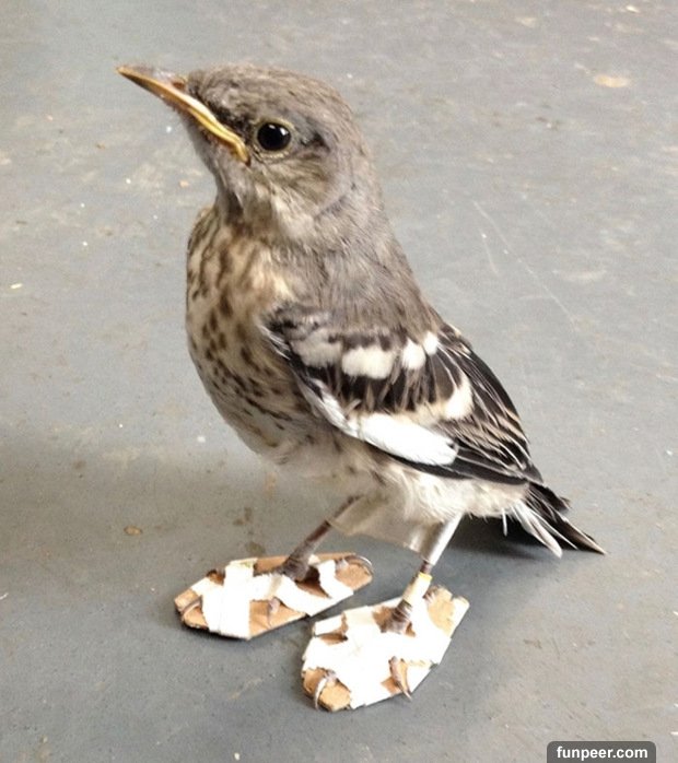 簡單來說就是矯正間拖鞋囉~好可愛啊!!!據悉這種病況在幼鳥身上比較常見,不過在經過「小雪橇」治療後,一到兩週就可以康復。之後牠就可以健康的回歸自然了!