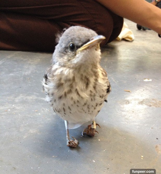 圖片轉自metro下同上個月加州動物保護中心(California Wildlife Center)的工作人員也做了一件善事,牠們在野外發現了一隻小反舌鳥倒在數支旁邊無法動彈後來他們發現這隻小反舌鳥的