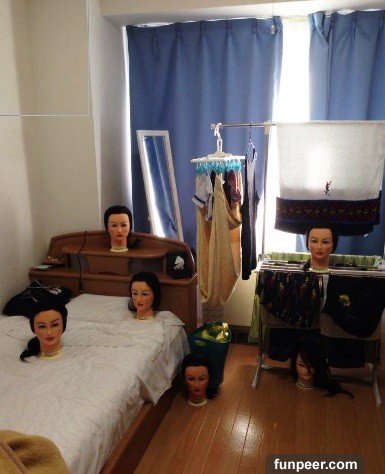 網友說他女友是美容科的學生,有天約他進女生宿舍玩,他滿懷期待的推開門,卻差點沒嚇到尿褲子,因為床上、桌上、地上滿滿的都是盯著他看的人頭啊!![]()