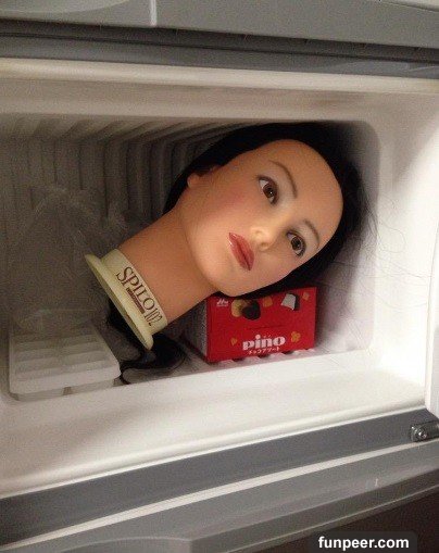 不僅如此,連打開冰箱都有顆頭在跟他打招呼,不敢想像如果三更半夜肚子餓開冰箱找東西吃,會出現什麼鬼片情節....!