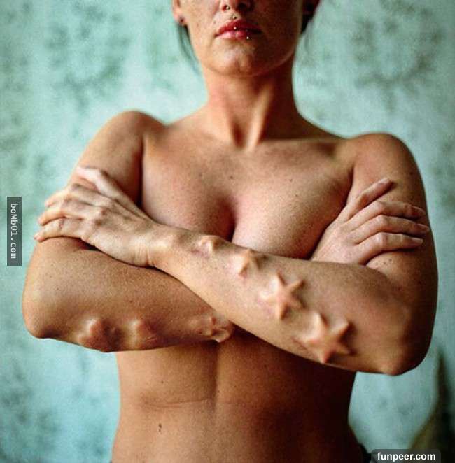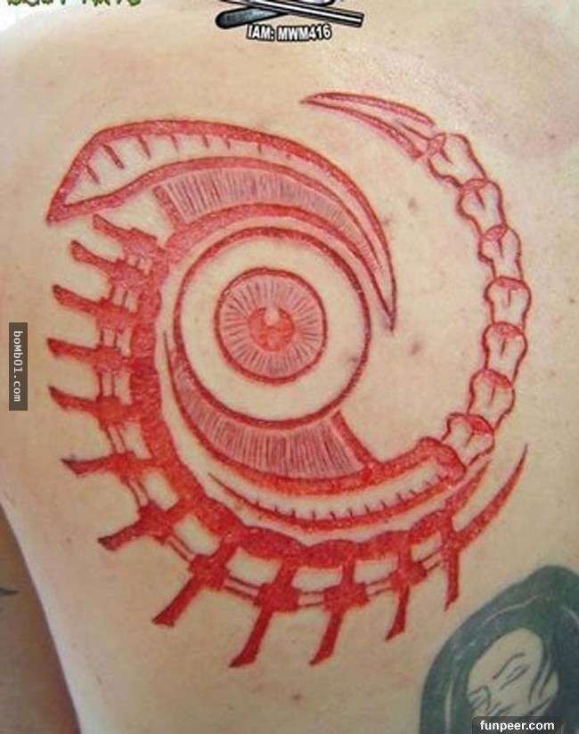 ▼2. 這身體改造叫做「劃痕法」,又稱為肉雕。通過錯綜複雜地切割皮膚,當創口愈合後,疤痕形成一幅畫。