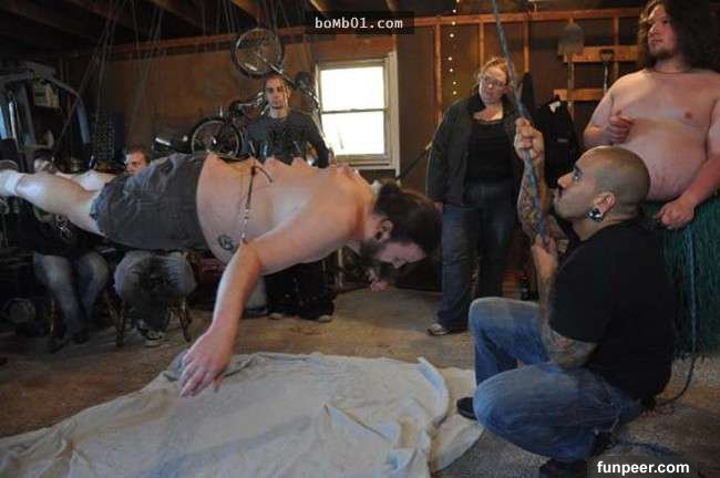 ▼5. 讓工具刺進皮膚,完成身體懸浮,是另一種形式的極端身體改造。