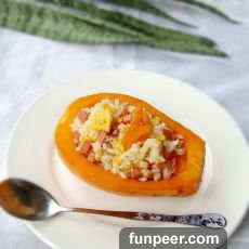 营养又美味的木瓜炒饭,可以给孕妈妈补充蛋白质,钙、铜等矿物质,偶尔来一份这样的炒饭,挺不错哦。