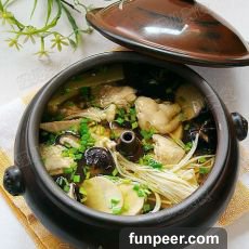 这道菜鸡肉嫩滑,汤清而纯。孕妈妈适当吃一些菌类食物,有利于提高机体的免疫力。