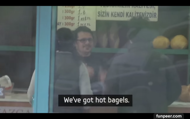 ↓↓早餐店員工向他推薦貝果,用的是手語