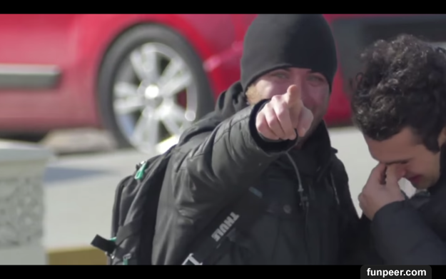 ↓↓攝影機是事前安裝的,但那些和他打手語的人卻是真實的鄰居,他們為了他特別花了1個月學習手語