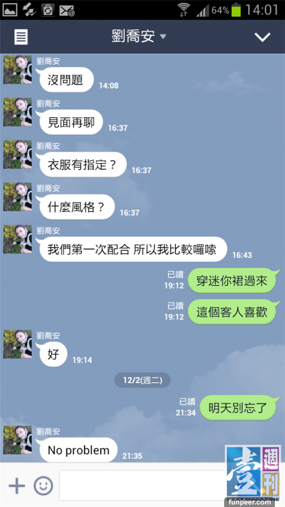 ▼劉喬安稱第一次跟援交經紀人配合,所以比較囉嗦。(圖片來自壹週刊)