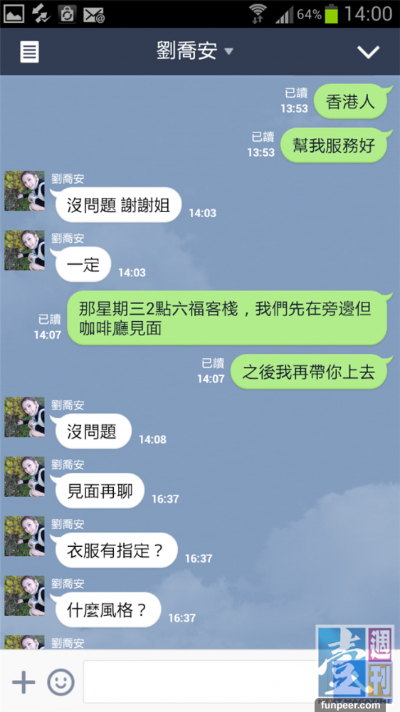 ▼與劉喬安約好在飯店,劉喬安再次主動詢問,赴約的衣服需要什麼風格。(圖片來自壹週刊)