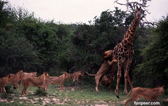 via 長頸鹿母子被飢餓的獅群團團圍住,她為了救小孩最後竟使出這招必殺技...我快哭出來了