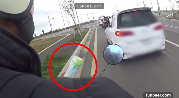 日本馬路上驚見司機隨手亂扔垃圾…英勇的機車騎士發現後立馬撿起垃圾追上去懲罰他!