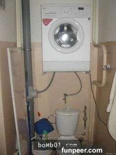 ▼7. 省水的代價就是--你得站在馬桶上才能用洗衣機。