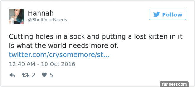 "這個世界需要更多走失小貓咪穿上剪了幾個洞的襪子毛衣"喜歡嗎?趕緊分享出去吧!讓大家都看看這隻幸運又可愛的貓咪!