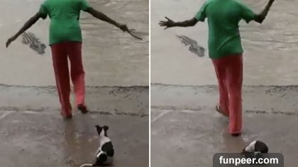 事情發生在澳洲的卡卡杜國家公園,一名女子帶著小狗在河邊散步,卻遇到了鹹水鱷悄悄靠近,眼看就要撲上岸來,讓一旁小狗也嚇得退到主人身後。![]()