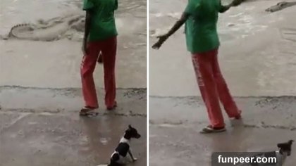 沒想到這位女子沒有逃跑,從容脫下一隻拖鞋,對著鱷魚揮動,鱷魚居然就這麼退了下來、轉身遊走。影片上傳後,網友紛紛驚訝留言:「這鱷魚是怕拖鞋嗎?」、「怎麼跟吸血鬼看到十字架一樣」、「大媽英勇退敵,武器居然是拖鞋」、「女中豪傑啊」。