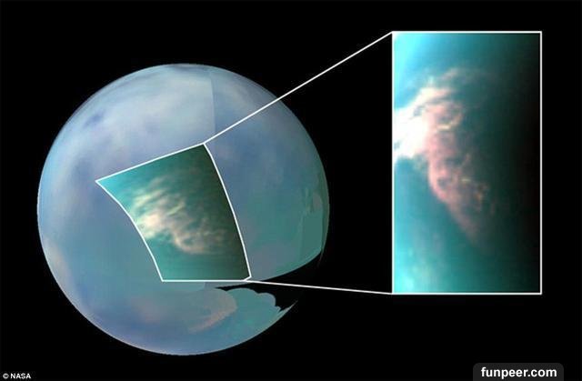 除了發現土衛六上最高峰-米斯林蒙特斯峰之外,卡西尼號利用紅外影象還發現土衛六的南極地區出現了巨大的雲層,這些雲的形成以及移動方式與地球的雲層非常相似,但是它們的移動速度要更慢一些。雖然我們現在仍然未探索到土衛六上所存在的生命體,但是相信隨著更進一步的探索我們將會發現一些新的事物!