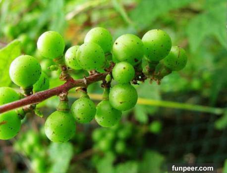 顆粒很小,熟透的變成紫色,像一串中珍珠,很酸。