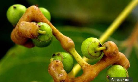 油茶樹葉的變異體,形狀似桃,能長至拳頭大小,未成熟時候皮綠色或者暗紅。成熟后表皮脫落,色白,中空