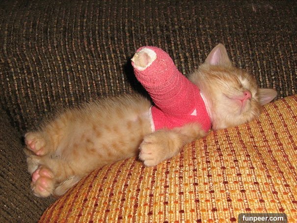 #2小貓咪的前腳被包上石膏之後睡著還懸在空中XD
