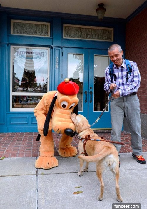 ▼Ace是一隻正在接受訓練的導盲犬,牠的訓練員珊迪(Sandy Steinblums)帶著牠到迪士尼樂園進行訓練時,幸運地遇見布魯托Ace超興奮的!有網友就留言稱讚迪士尼樂園,說這裡的工作人員讓不管來到樂園的大人、小孩,就連狗兒都可以得到歡樂,有很棒的服務精神!下次要去迪士尼樂園,也可以帶狗狗去找布魯托看看喔 (人´∀`).☆.。.:*・° 原文出自:curazy延伸閱讀>>迪士尼最強迷人反派!7個影片告訴你《美女與野獸》裡面的加斯頓是如何贏得大家的心!我也是千百個不願意啊!大爆笑!迪士尼「換臉」大賽開打,網友們一個個都壞到不行啊~