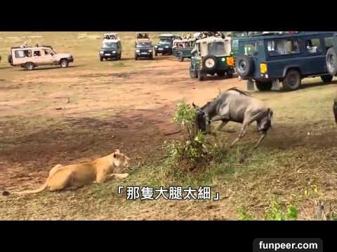 這隻母獅趴在地上蓄勢待發,準備「獵食」!沒想到最後竟突然衝出一隻了....太好笑了啦!