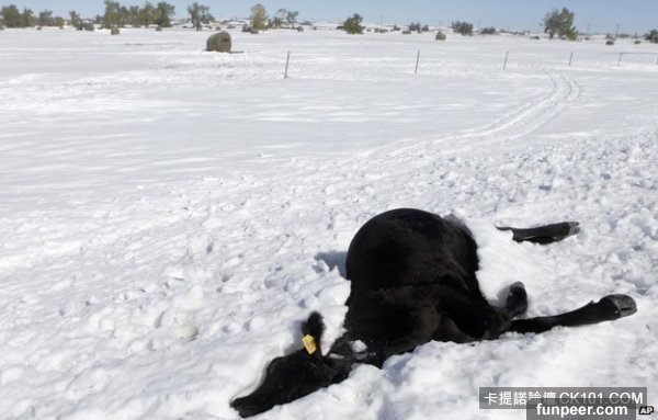 雖然這樣規模的暴雪十分罕見,但是從動物福利的角度看如此多的奶牛死於非命是件令人不安的事情。即使在冬天,奶牛也會被留在室外吃草,如果天氣糟糕,它們纔會被帶進畜棚裡。不幸的是,這次的暴雪實在太快太大了。