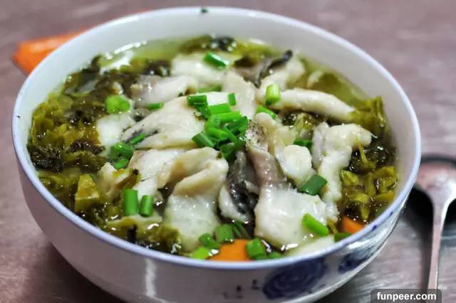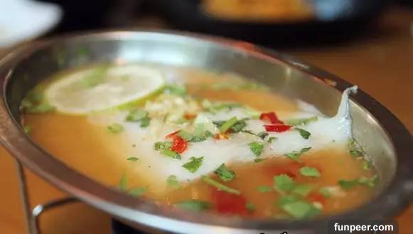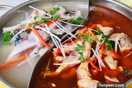 1.魚宰殺后治凈,剔下兩扇凈肉,剔去腹刺,用斜刀法切成厚約2厘米的瓦塊形大片;魚骨斬成大塊,魚頭劈成4-6塊,加少許鹽、白酒碼味幾分鐘,用清水衝去魚塊上的血污粘液,然後粘勻干細豆粉。泡酸菜切成薄片,蔥切成6厘米的段。2.鍋置旺火上,倒入油燒至六成熱,先下蒜片、花椒爆香3.再下郫縣豆瓣、泡辣椒、泡姜、豆豉茸、老薑顆炒香4.然後將魚骨、魚片分別放入鍋中;待魚片表面凝固成形時,速加清水1500克,再放入料酒、火鍋底料、干辣椒節、雞精、味精、精鹽、白糖、蔥節等調料,起鍋倒入火鍋盆中,最後撒入油酥黃豆即可上桌。