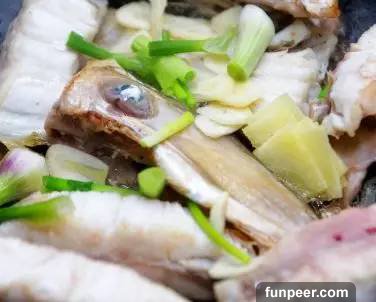 材料:巴浪魚(2條,476克)、清雞湯(2杯)、姜(5片)、蔥(2支)、蒜(3瓣)、油(3湯匙)、普寧豆醬(2湯匙)、鹽(1/2湯匙)、料酒(1湯匙)、白糖(1/3湯匙)