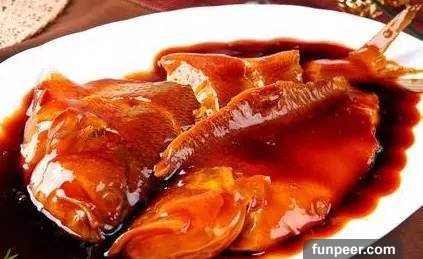 原料:鱸魚一條、生薑數片、蔥、醬油、黃酒、醋、老抽、精鹽、味精。