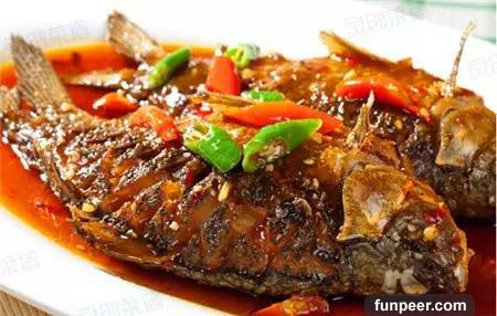 材料:鯽魚500g、油適量、鹽適量、醬油適量、醋適量、糖適量、蔥適量、姜適量、蒜適量、八角適量、辣椒醬10g