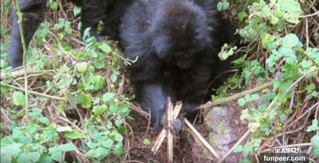 在成年猩猩Vuba的號召聲下,正值血氣方剛的Dukore和Rwema,同心協力的將埋在地上的尖頭樹枝拔起,因為牠們的同伴曾因為這個陷阱而被害死,它們這種既聰明又充滿智慧的行為,連公園大猩猩研究專家都感到相當驚訝!
