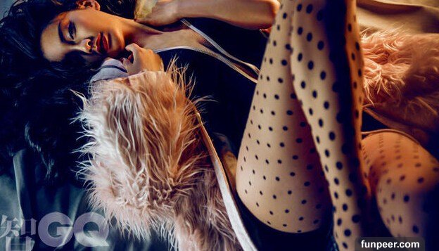 5月5日,有網友曝光了一組baby為某雜誌拍攝的封面照片。照片中,身穿內衣和多款黑絲絲襪出鏡的baby性感撩人,大秀纖腰美腿。一改「跑男」中獨立奔放的女漢子形象,Baby在這組照片中重新變回性感女神。