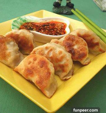 韓國辣白菜鍋貼:主料:麵粉300克,瘦肉250克,韓國辣白菜300克;配料:雞蛋一個,生薑、蔥、生粉、生抽、芝麻油、胡椒粉各適量;做法:一.和面:1.先將適量的開水加入麵粉中,用筷子將其攪拌成疙瘩狀;再加入少許的冷水,用手揉至麵糰光滑,蓋上保鮮膜醒20分鐘;二.餡料:1.瘦肉剁碎成肉末,加入適量生粉抓勻,再加入適量的鹽、胡椒粉、生抽、芝麻油、打入一個雞蛋後朝一個方向拌勻,醃製二十分鐘;2.韓國辣白菜切碎,蔥切花,生薑切成末;3.將薑末、蔥花與辣白菜末一起加入醃製好的瘦肉末中,朝一個方向拌勻待用;三.包鍋貼:1.將醒好的麵糰揉勻後搓成長條2.再分成均勻的小劑子3.將小劑子揉圓後放在撒了一層麵粉的案板上用手將其按扁4.再用搟麵杖將其搟成麵皮5.取適量醃製好的餡料放入麵皮中央6.先將麵皮對折,將中間捏緊,再將四個角也依次捏緊,鍋貼生坯就做好了.四.煎鍋貼:1.平底鍋內放油,放入鍋貼生坯(要擺緊湊一些),小火將其煎一分鐘左右2.碗中加入少許麵粉,倒入少許水,攪拌成麵粉水3.將麵粉水倒入平底鍋內,約淹過鍋貼的三分之一處即可,蓋上鍋蓋,小火將其煎黃.4.將一個盤子蓋在煎好的鍋貼上,然後將平底鍋翻過來,香噴噴的鍋貼就完整地到盤子裡啦!