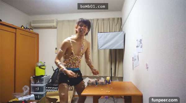 把曼陀珠薄荷糖放進可樂中的結果大家都知道,那就是會發生可怕的噴發現象。正常人都不會做這樣的事,但是下面這個男生卻要挑戰極限。他在自己的身上貼滿了曼陀珠薄荷糖,並在浴缸中倒滿了可樂,然後跳進去。