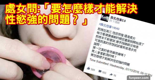 女網友PO文自稱處女:很想試試看到底是多爽... 性O強但不敢嘗試