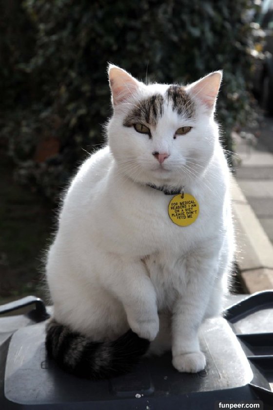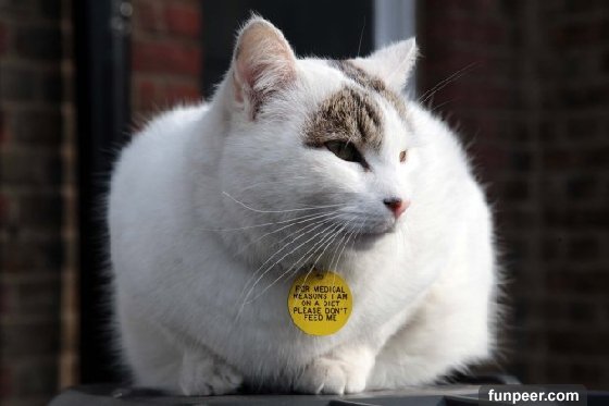 胖嘟嘟的喵星人在陽光下愜意的曬太陽,蹭著你撒嬌,讓人情不自覺地想摸摸牠、多餵牠幾條小魚呀!不過大家要留意,如果貓咪太胖的話,會影響到他們的健康喔!在英國一隻名叫Eduardo的大胖貓,每天除了家裡吃飽喝足外,還會逕自到外頭,蹲坐在一個醒目的地點,向路人撒嬌要東西吃,久而久之就變成現在這個模樣了。