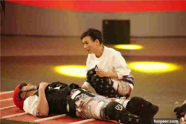 到《為她而戰》上,參加各種競技,累癱倒在地,只為搏老婆一笑