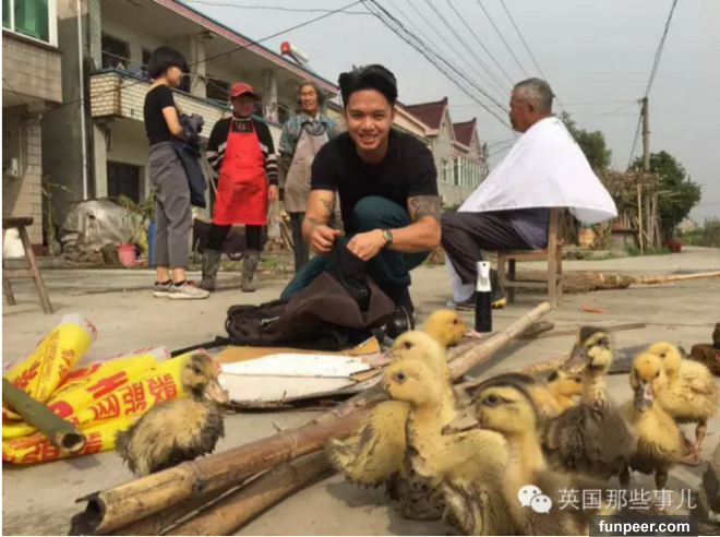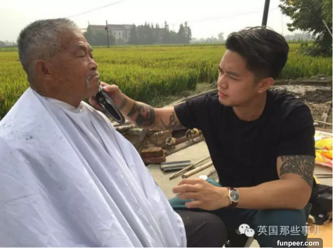 他還跑到了上海郊區,為那裡的農民伯伯和奶奶們理髮