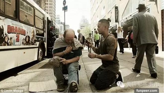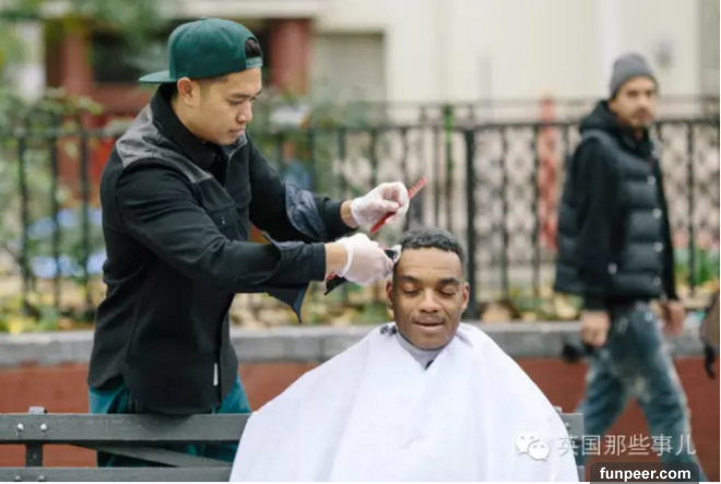 雖然,他幫過很多名人,富豪剪過頭髮.但是,這樣的滿足感,是他在紐約的高級髮廊裡從來不曾擁有的... 他覺得自己給這些孩子們帶來了新生... 後來,他回到紐約後,每到星期天,他唯一的休息日,他都會背上自己的工具箱,走上街頭為流浪者們免費剪髮