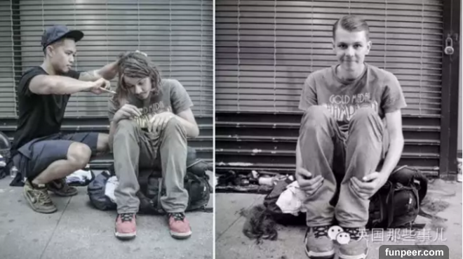那些無家可歸的人,原本已對生活失去信心,頹廢麻木的活著然而當小哥為他們剪完頭髮以後,他們看到了一個全新的自己