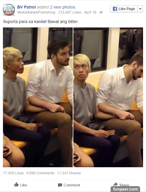 蒙德(左)跟男友托斯頓在捷運上被偷拍到的照片。原本他們只是一對普通的同性情侶,但卻有網友說同性情侶就是噁心,泰國人崇洋媚外等;甚至還有不少人針對蒙德的長相做出攻擊,說他「臉這麼醜應該是很有錢才能交到帥男友」、「外國人都喜歡養寵物」等等,讓他們承受不少罵聲。